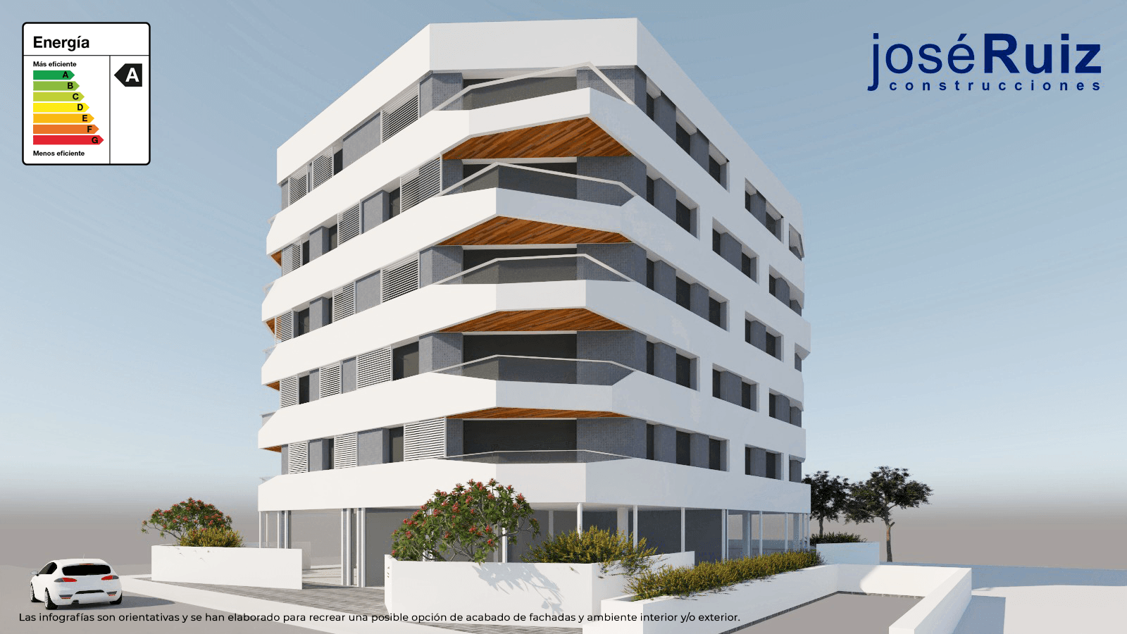 Se ha proyectado construir un edificio de referencia, no solo en el Residencial Las Yucas, sino en toda la bahía de poniente. Partiendo de un prima cubico, los arquitectos, articulan un volumen complejo trabajando las aristas, y danto total protagonismo a la impresionantes vistas al mar existente. El resultado es un edificio con aspecto actual, y recuerdos al minimalismo. Se trata de un bloque colectivo de 15 viviendas, a razón de 3 viviendas por planta, donde además se incorpora en planta baja, el uso comercial, y en planta sótano, el uso garaje. El interior de las viviendas, es totalmente personalizable, se han incorporado a la memoria de calidades, materiales como los SUELOS PORCELÁNICOS, AZULEJOS DE GRAN FORMATO, PUERTAS BLANCAS, PINTURA LISA, etc. Manteniendo las ya de por si buenas calidades con las que se venían construyendo en este residencial, PUERTA ACORAZADA, PREINSTALACIÓN DE CLIMATIZACIÓN, ARMARIOS EMPOTRADOS, etc.